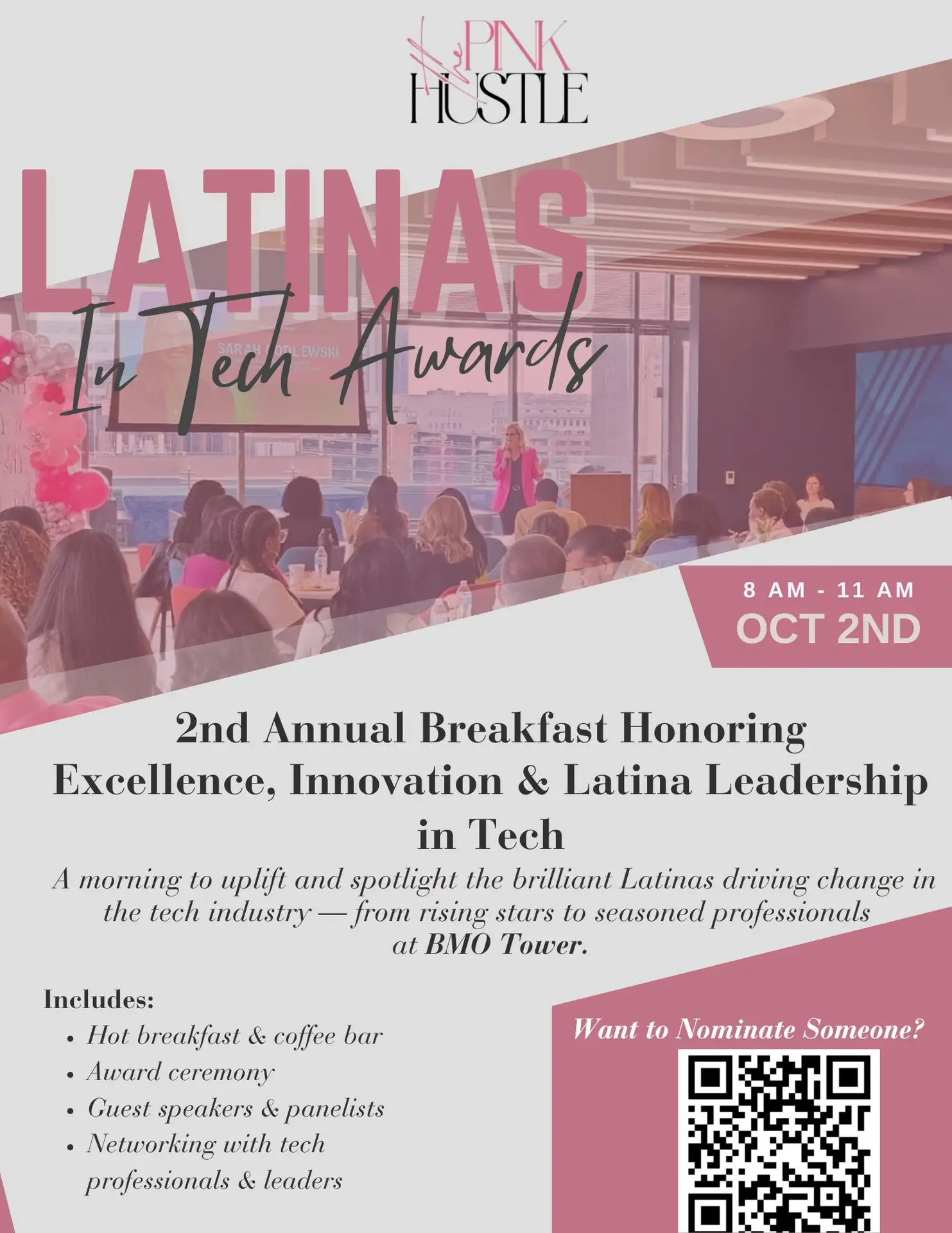 The Latinas in Tech Awards Breakfast is just around the corner, and we couldn’t be more excited! Thank you to our incredible comunidad for your overwhelming nominations and support. Your voices have been heard, and the anticipation is building!!